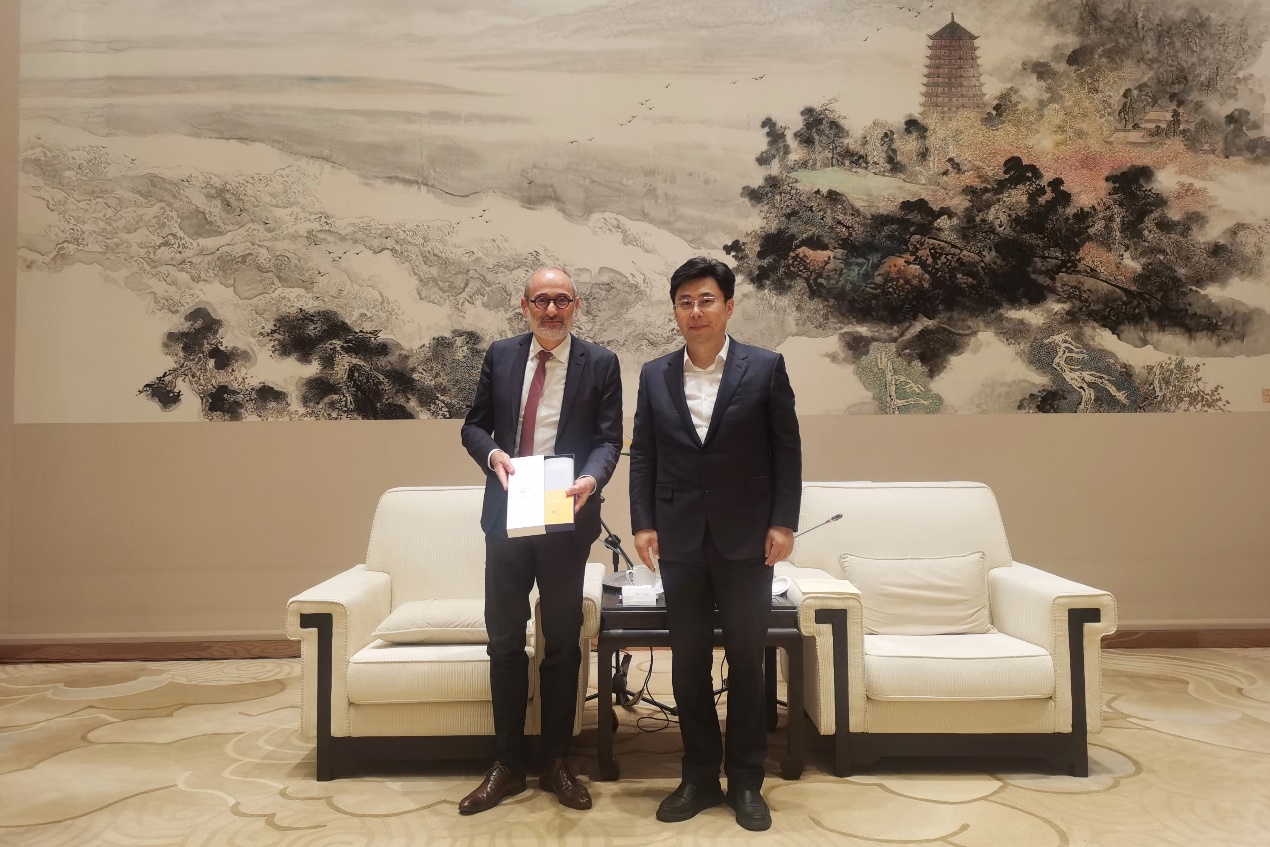 下午,浙江省杭州市委常委、副市长胥伟华会见弗提亚都校长一行,双方希望通过杭州项目加强合作往来,促进人才交流与科技成果转化,高质量推进北航中法合作办学工作在杭州落地开花。