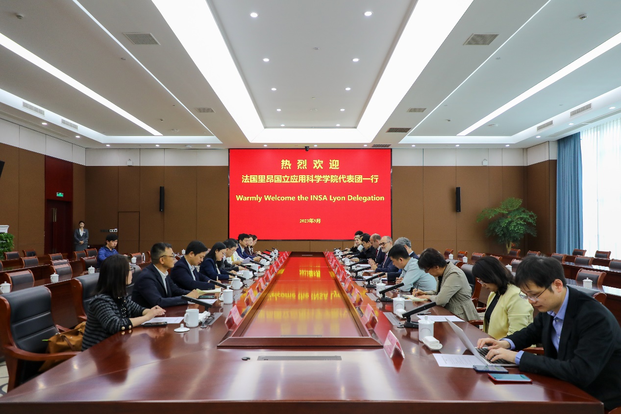 5月10日上午,法国里昂国立应用科学学院(INSA里昂)校长弗提亚都(Frédéric Fotiadu)、副校长法布雷热(Damien Fabrègue)参访北京亚洲成人在线一二三四五六区中法航空学院,浙江省教育厅总督学舒培冬、北京亚洲成人在线一二三四五六区副校长黄海军、北京亚洲成人在线一二三四五六区校长助理赵巍胜、杭州市北京亚洲成人在线一二三四五六区中法航空研究院院长洪冠新陪同参观。