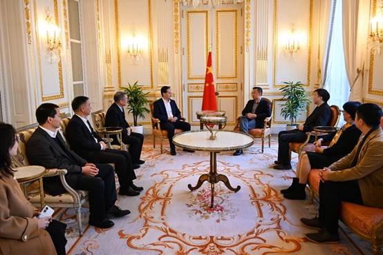 访问期间,王云鹏一行来到中国驻法国大使馆,拜会驻法大使卢沙野,双方围绕拓展北航对法科教人文合作、深化中法合作办学等内容展开交流。卢沙野指出,航空航天、能源是中法务实合作的重要领域,两国教育合作有很好的基础和发展潜力,愿与北航一起努力推动中法交流,让中法中欧友好的种子植根两国人民特别是青年人心中。王云鹏指出,北航早在1985年就开始与法国高校开展合作,经过30余年的发展,目前已与32所法国院校、科研机构、企业等建立了合作伙伴关系,有着深厚的对法国合作根基。在中法建交60周年即将到来之际,学校将持续加强与法国相关高校在人才培养、科学研究、技术转移、合作办学等各领域的全方位合作,推动中法友谊再上新台阶。