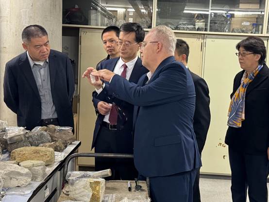 在德国慕尼黑,王云鹏一行首先来到慕尼黑工业大学,与慕尼黑工业大学校长托马斯·霍夫曼(Thomas F. HOFMANN)等会面交流,详细了解两校间人才培养、科学研究等方面合作开展情况,双方签署了校级合作备忘录,在推动联合课程建设、博士双学位联合培养、深化与产业界合作等方面开展了务实研讨。随后,王云鹏一行拜会了欧洲科学院院士、德国国家科学技术研究院院士、慕尼黑大学地球与环境科学学院院长唐纳德·布鲁斯·丁韦尔(Donald Bruce DINGWELL)、执行院长拉瓦莱(Yan LAVALLÉE),参观了学院高温实验室、EMPA实验室、岩石矿物实验室等,就拓展空间环境、地球科学领域的学术科研交流与丁韦尔教授达成了多项共识。