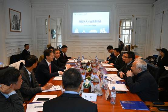 王云鹏在巴黎主持召开了高层次人才交流座谈会,与来自法国教育界、科技界的12位华裔专家进行深入交流。会上,王云鹏认真听取了每一位专家的意见建议,介绍了北航的基本情况和引才政策。他指出,近年来,北航加快落实人才强校战略,持续优化引才育才机制,自2016年来面向海外人才连续举办了十四届唯实论坛,聚焦人才成长实施青年拔尖人才支持计划、创新团队培育计划等,提供有竞争力的待遇和生活保障,就是为了把广大海外优秀人才汇聚到学校“双一流”建设中来,希望各类海外优秀人才了解北航、加盟北航,为北航事业发展建功立业。