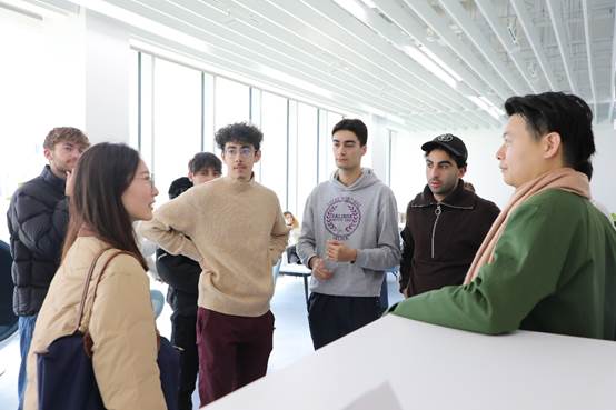 20日上午,学生交流团参加了介绍交流会,中法航空研究院党委副书记、纪委书记应伟东,中法航空学院副院长张巍出席并发言。会上,应伟东副书记代表研究院对学生交流团的到来表示热烈欢迎。他表示,北航杭州国际校园将按照国际化的办学定位,与更多高校开展国际合作,以优质的办学资源、高能级的科研平台和优美的校园环境吸引更多国际化人才来“浙”里开展国际学术交流,迎接更多国际学生来杭交换。张巍副院长向交流团详细介绍了北航杭州国际校园的办学历程、校园环境设施以及中法航空学院的办学特色。他表示,希望未来有更多的国际合作和交流机会,也欢迎交流团作为中法两国友谊的桥梁,向法国的伙伴介绍北航杭州国际校园和杭州这座美丽的城市。会后,交流团参观了图书馆、体育馆、音乐厅等地,对现代大气的北航杭州国际校园赞叹不已,并与学院法语教师进行面对面交流。