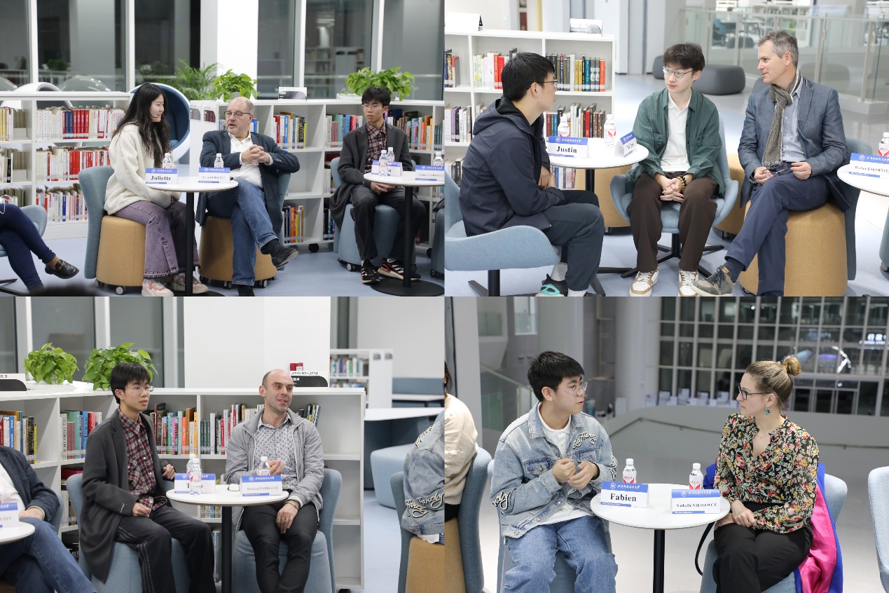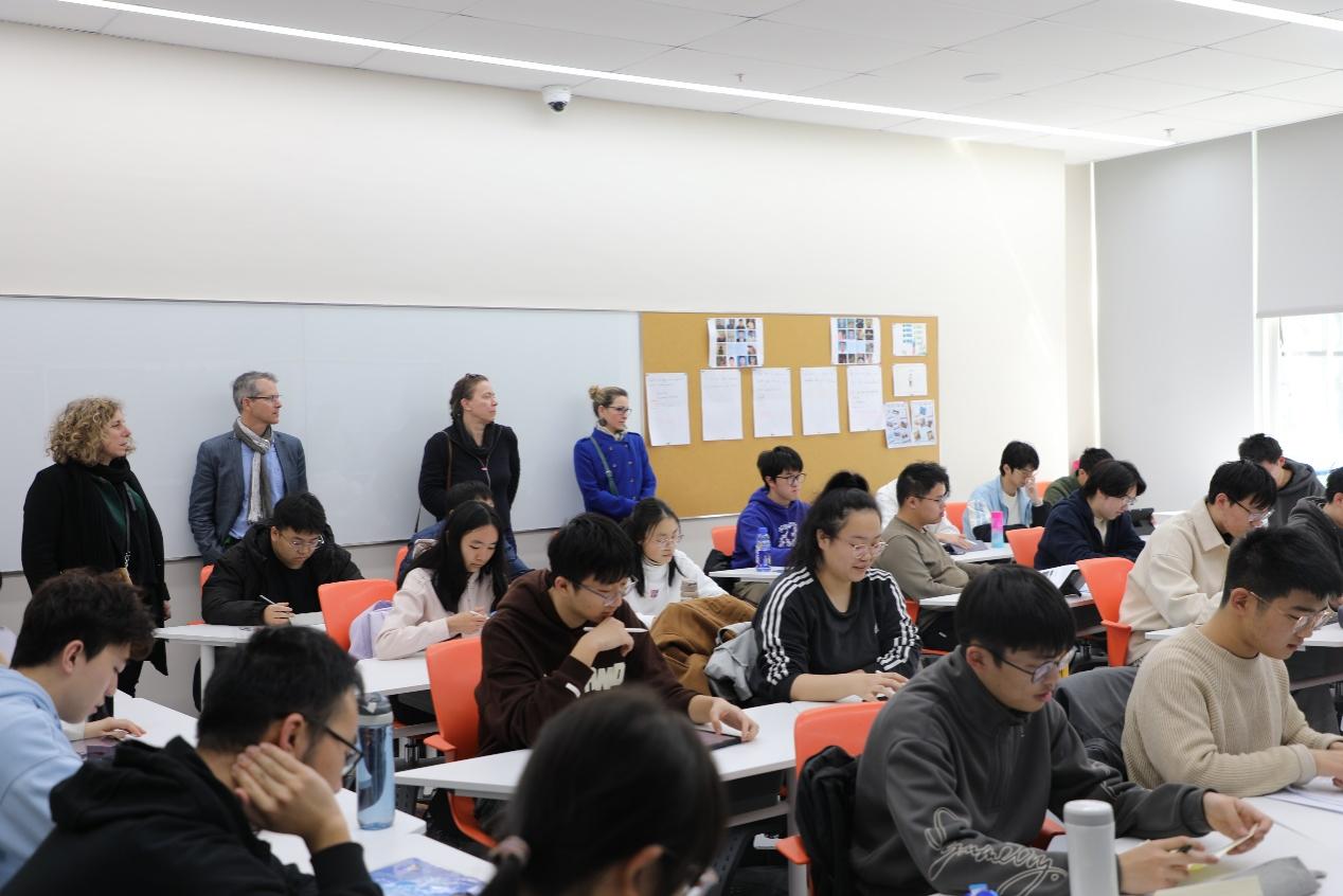 3月19日下午,代表团观摩了综合法语和数理法语课堂,全面了解中法航空学院学生课堂学习情况和精神面貌。3月21日晚上,代表团还与学生代表进行了交流座谈,通过轻松愉快的全法语互动问答,了解学生选择中法航空学院的初衷、对法语和法国文化的学习和了解,以及课业学习之外的兴趣爱好。座谈期间,科赛院士鼓励同学们道:“相信五年之后,你们的法语将会达到令人惊艳的水平。”