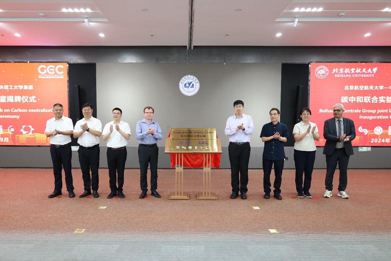 在现场嘉宾和师生们的热烈掌声中,与会领导共同为联合实验室揭牌,标志着北航与中央理工大学集团在碳中和领域建立了具有里程碑意义的合作。