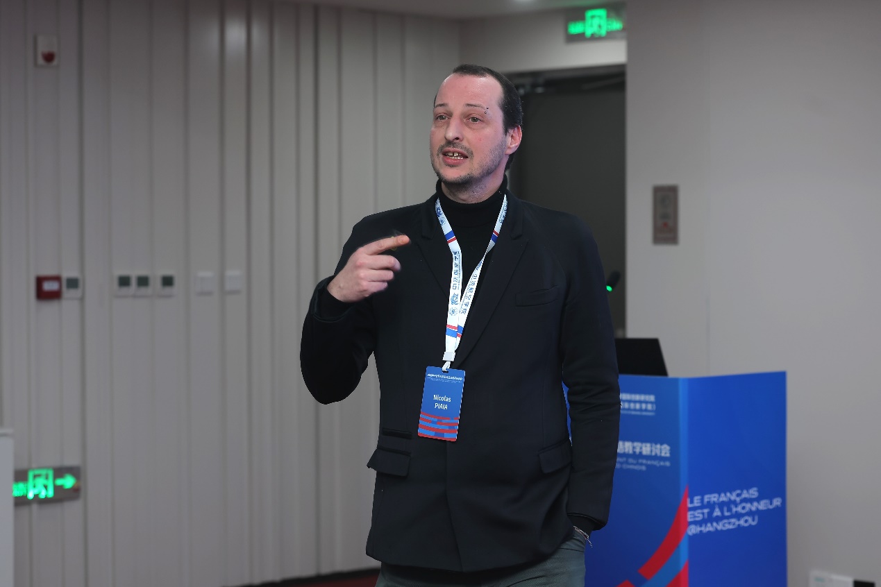 研讨会上,杭州法语联盟法方校长Nicolas PIAIA就DELF-DALF考试在对外法语教学中的作用做了精彩讲解。他分享了DELF-DALF考试体系的全球现状及其对法语教育的深远影响,并阐述了考试标准如何帮助学生提升法语水平,促进跨文化交流,并增强全球竞争力。