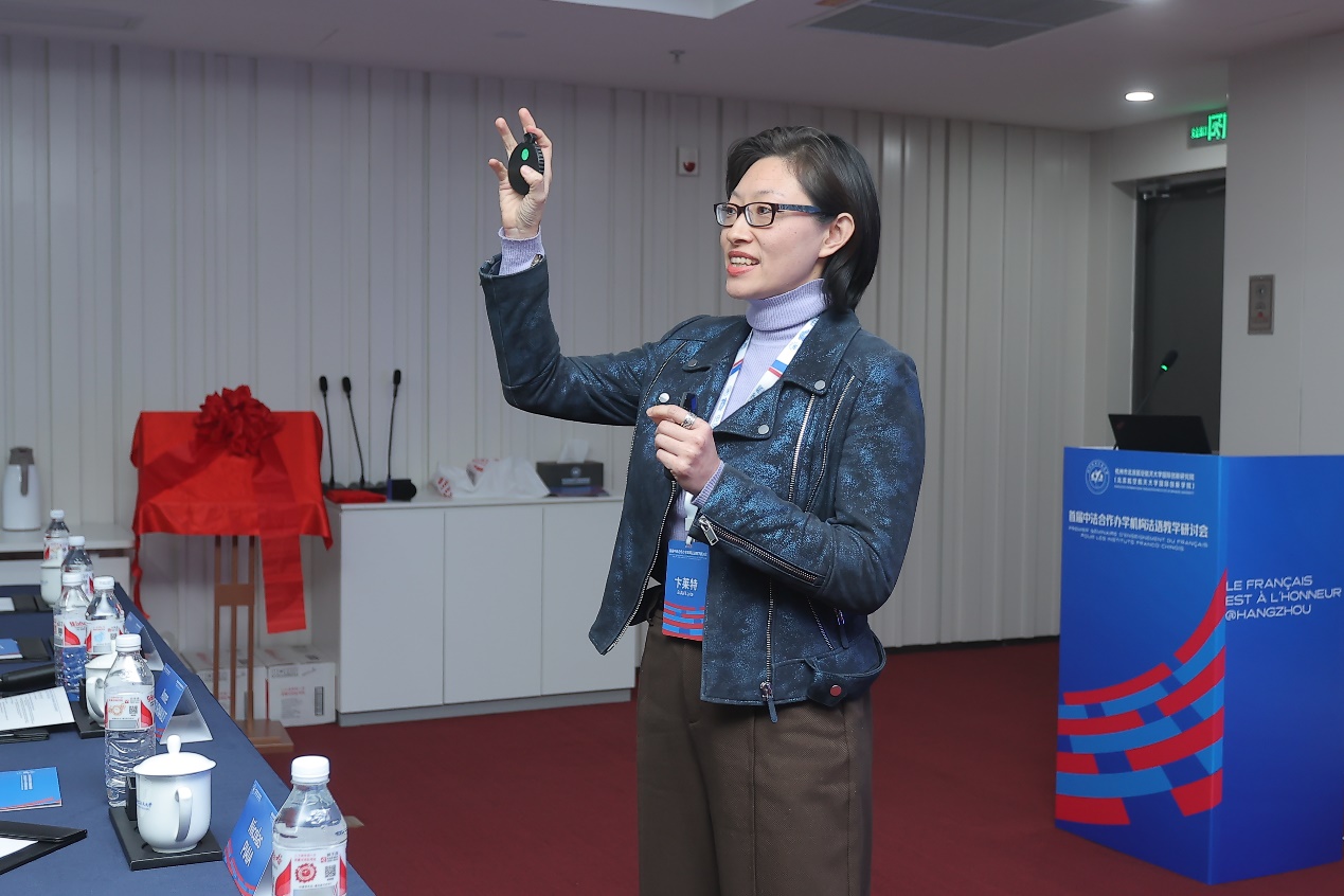 中山大学中法核工程与技术学院法语教研室主任卞莱特围绕“对外法语教学在中法工程师培养中的作用:以中法核工程与技术学院为例”做了精彩的报告。她提出,教学质量的评估不应仅依赖学生的学术成绩,更应重视学生的反馈与学习体验,只有结合学生的实际需求,才能进一步提升法语教学的质量。