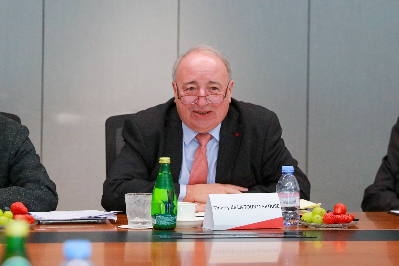 (文/徐冉 赵晓宇)3月27日上午,“赛博-苏泊尔奖学金”捐赠签约仪式在杭州苏泊尔大厦举行。北航国新院党委副书记、院长董卓宁,副院长张巍、国际合作办公室主任陈超受邀出席,法国赛博集团(Groupe SEB)董事长戴乐涛(Thierry de LA TOUR D'ARTAISE)、集团亚洲区主席戴怀宗(Vincent TAI),浙江苏泊尔股份有限公司副总裁叶继德等参加签约仪式。
