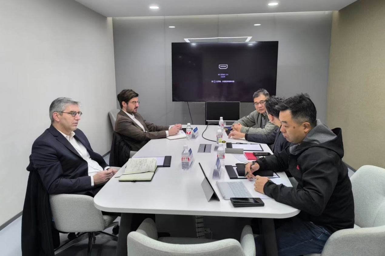 北航国新院院长董卓宁、副院长张巍,中法航空学院法方院长让帝(Frédéric GENTY)、北航国新院国际合作办公室主任陈超与卡扎利斯副校长一行会面。董卓宁院长代表国新院对卡扎利斯一行的到访表示热烈欢迎。他指出,此次会面将进一步优化两校合作机制,推动关键项目深化,为中法航空学院下一阶段的高质量办学奠定坚实基础。双方一致表示,将以此次访问为契机,保障各项工作在7月召开的联合管理委员会会议前取得阶段性进展,推动中法航空学院办学工作迈上新台阶。