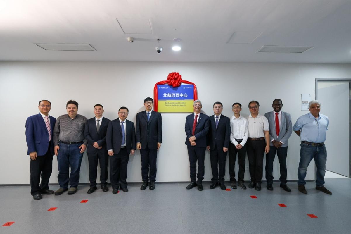 随后,梅德罗尼奥、赵巍胜、舒培冬、王红威、谭清海、潘长青、董卓宁、刁训刚共同为北航巴西中心揭幕。中心启用后,将作为北航与巴西学术和工业机构之间的主要联络平台,协调和促进中巴人才引进、学术交流等合作项目。