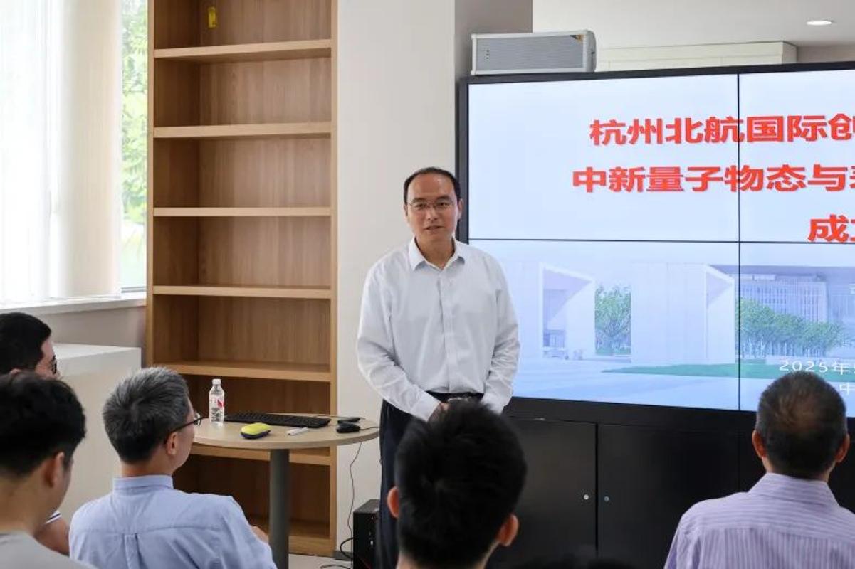 5月19日上午,北航国新院与新加坡国立大学合作共建的中新量子物态与表面科学联合实验室在北航杭州国际校园科研一号楼正式揭牌。北航国新院院长董卓宁、新加坡国立大学王学森教授、物理化学科教平台主任周苗教授、物理化学科教平台副主任牛天超教授、浙江大学陆赟豪教授、杭州师范大学钟建强教授、天津工业大学朱涛副教授、物理化学科教平台华陈强副教授、武媚媚实验师以及平台博士后与硕博士研究生参加活动。揭牌仪式由周苗主任主持。