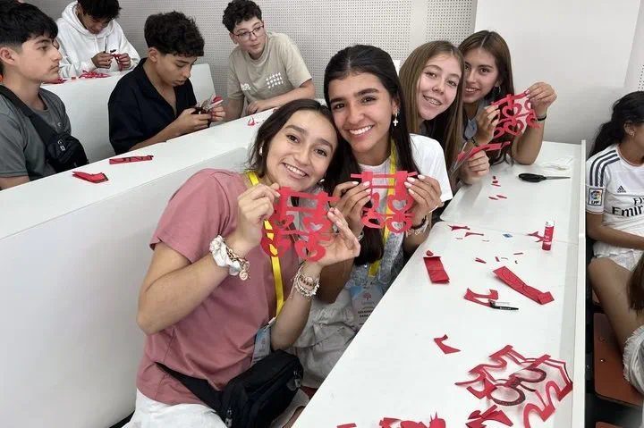 中文课堂上,同学们在欢声笑语中掌握了日常基础词汇,体验了中国传统剪纸艺术,在老师的指导下学习剪制寓意吉祥的窗花,一纸一剪间感受中国民间艺术的精巧与智慧。