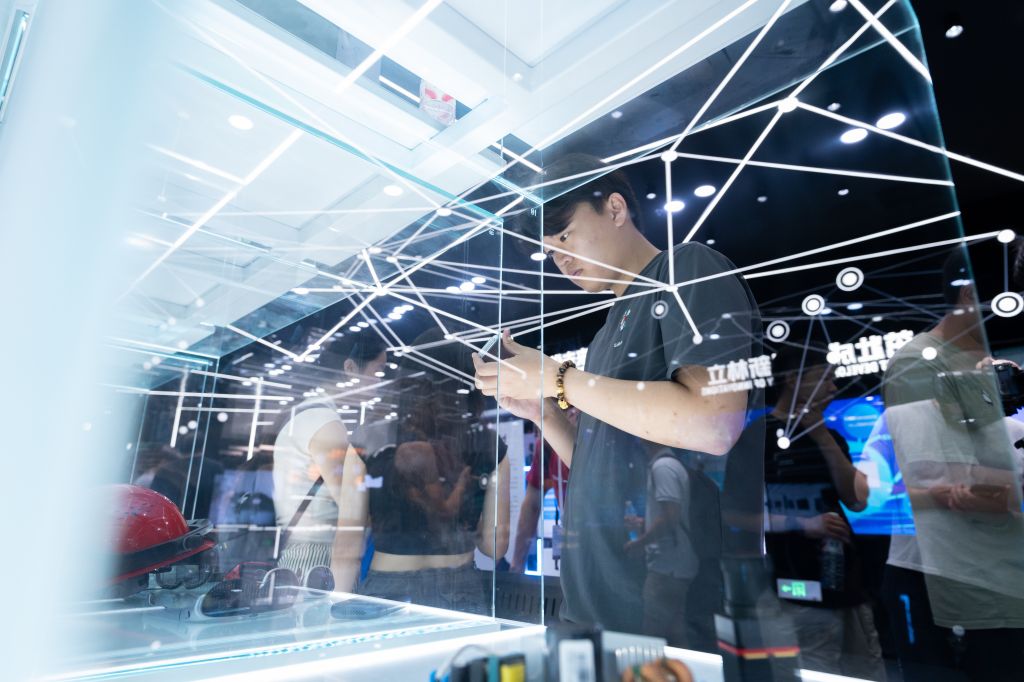 △学员在未来科技城城市展馆体验科技成果样品