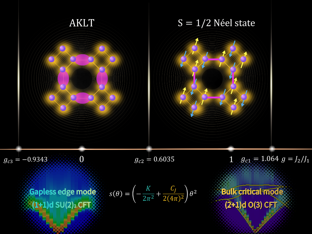 其中的K项由无能隙的边缘态提供,而CJ项由体的O(3)临界模贡献。我们的数值结果很好地验证了我们猜想。这也从数值角度直观揭示了边缘模与体临界涨落耦合的物理图像。