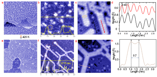 图2. Ⅱ型与Ⅲ型BiP纳米带的STM表征