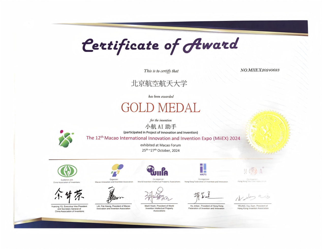创新引领!“小航AI助手”斩获澳门国际发明奖大赛金奖