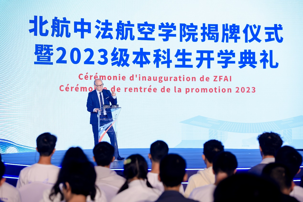 在教育部、工信部和浙江省、杭州市、余杭区政府的大力支持下,历经5年筹备,2023年4月22日,北航中法航空学院正式获批成立,落地北航杭州国际校园,北航中法教育合作踏上新征程。同年5月29日,北航杭州国际校园正式启用。同年8月29日,学院迎来首批本科新生。9月15日,北航中法航空学院揭牌仪式暨2023级本科生开学典礼隆重举行,标志着北航在建设高水平中外合作办学征途上又迈出了重要一步。