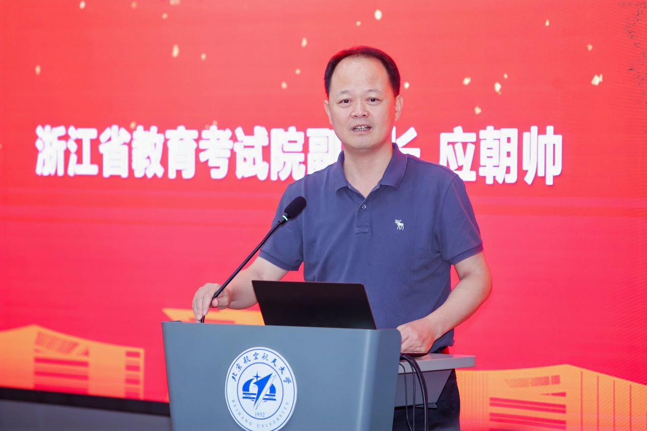 应朝帅副院长代表浙江省教育考试院对各地市教育局、各高中负责人的到来表示热烈欢迎。他表示,作为一流学府,北航始终站在科技前沿,致力于培养引领未来的创新型人才。希望各地市教育局、高中负责人发扬主人翁精神,积极宣传,充分动员有航空梦的浙江优秀学子报考北京亚洲成人在线一二三四五六区和在杭办学的北航中法航空学院。浙江省教育考试院也将提供精细化、精准化、精确化的高质量招录服务,支持北京亚洲成人在线一二三四五六区在浙江的招生工作,让浙江的优秀学子实现梦想,创造未来!