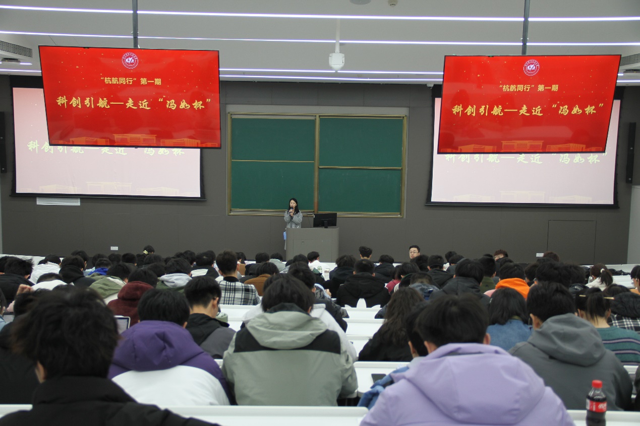 倪义坤老师从“冯如杯”竞赛核心概念切入,详细介绍了比赛的背景、意义以及冯如精神的内涵,并通过历年优秀作品案例展示,展现了北航学子在创新领域的卓越水平。倪义坤老师重点介绍了创意赛道,为同学们提供了明晰的参赛方向。“一赛走过三十三年,点点星火渐燎原。”他鼓励道,“冯如杯”竞赛是为纪念航空先驱冯如而设立的,如今已成为北航自主培养拔尖创新人才的重要平台,期盼杭州国际校园的同学们能在第三十四届竞赛中取得优异成绩。