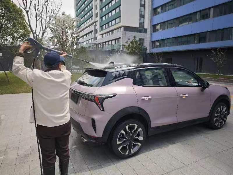 免费洗车服务反响热烈,临时洗车点“生意火爆”。保洁人员分工合作,用洒水枪清洗车上的尘土,再用干毛巾细心擦拭,为预约车辆做了一个“全身SPA”。