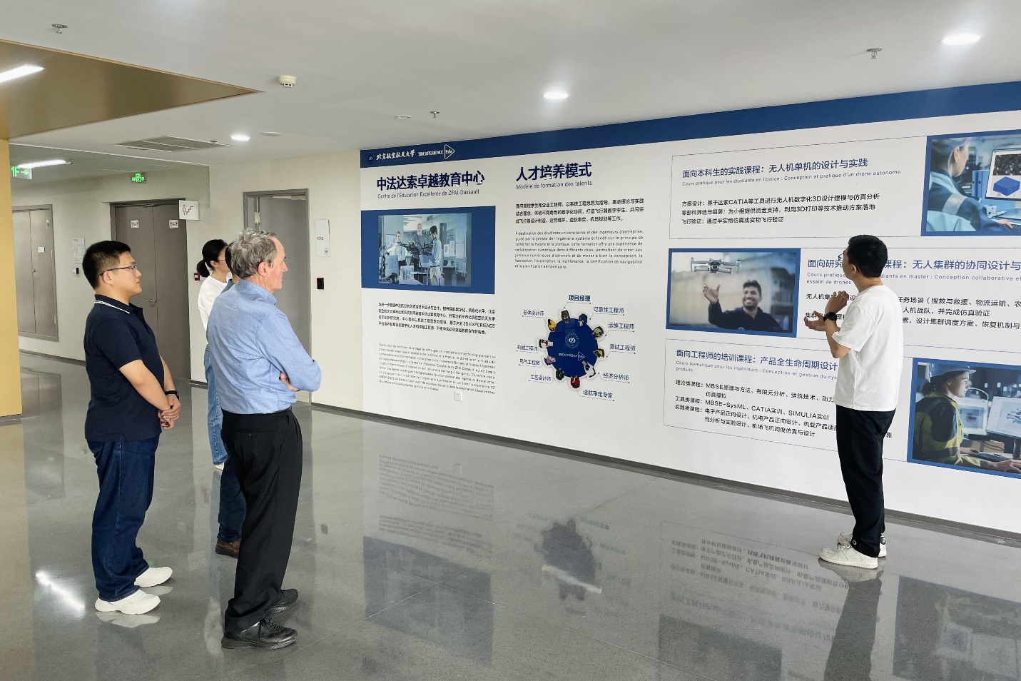 在校期间,Daniel DELAHAYE教授一行参观了中法-达索卓越教育中心、机群维修与运行仿真实验室、复杂系统风险评估实验室、机场全景增强监视实验室以及航空大数据智能服务实验室,全面了解了智慧民航科创中心建设发展情况。