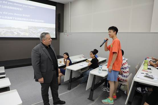 Franck DUBARRY极具感染力的分享也引发了北航中法航空学院大一新生们的热议。刘骁航表示:“今天的大师课让我感受到了梦想和热爱的巨大力量。Franck14岁开始学习飞行,年轻时加入法国海军成为舰载机飞行员,也曾担任航母空中交通管制员。在此之后,他考取了达索商务机飞行认证重回蓝天,并来到中国成立商务航空公司。正是这份执着支持着他做出一次次改变和尝试。他告诉我们,飞行员不是海军航空兵的全部,整个团队才是真正的英雄。在提问环节,他勉励我要Be confident,要敢于尝试、参与航空航天活动。这让我深受鼓舞”。
