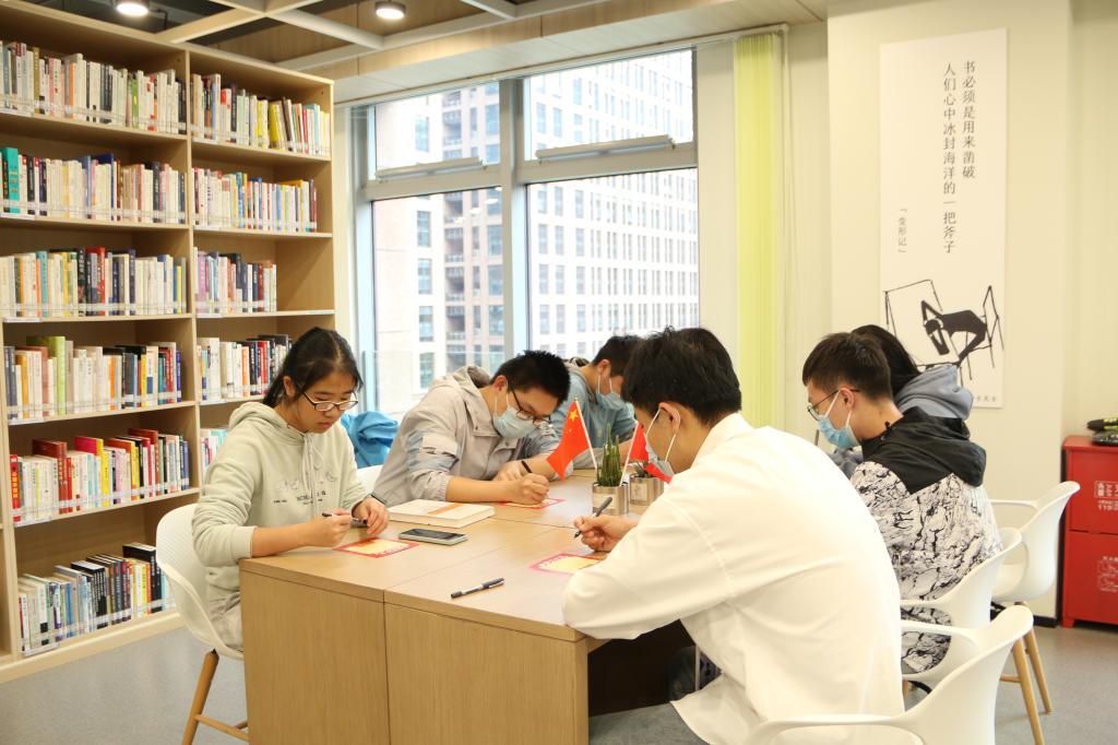 此外,在二十大召开前夕,党支部联合图书馆,组织“同心共庆二十大”活动,通过合影共庆、祝福献党、好书推荐等多种形式,鼓励师生传承红色基因,表达美好祝愿。