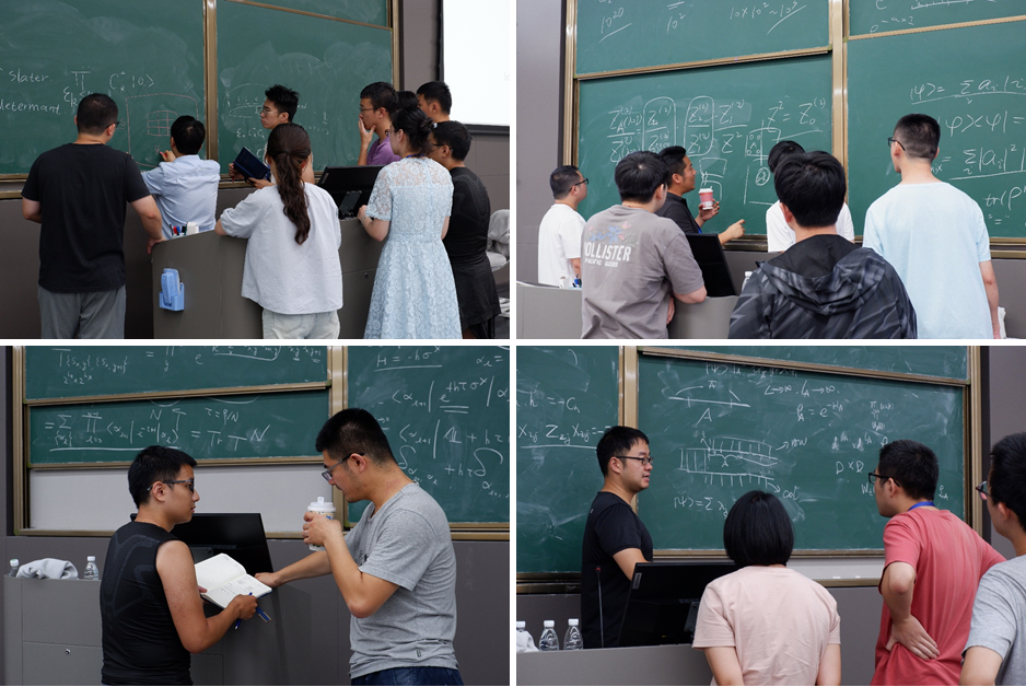 在六天的时间里,暑期学校的六位主讲老师——北航国新院物理化学科教平台王艳成副教授、西湖大学严正特聘研究员、中山大学邬汉青副教授、中国科学院大学卡弗里理论物理研究所张龙副教授和姜胜寒副教授,以及中山大学叶鹏教授分别讲授了量子蒙特卡洛方法、严格对角化、相变与重整化、张量网络拓扑态、非欧晶格上自由费米子的纠缠与拓扑序的图示化表示等量子多体物理的基本方法和基本理论,这场关于量子多体物理的学术饕餮盛宴得到了学员们的广泛好评。