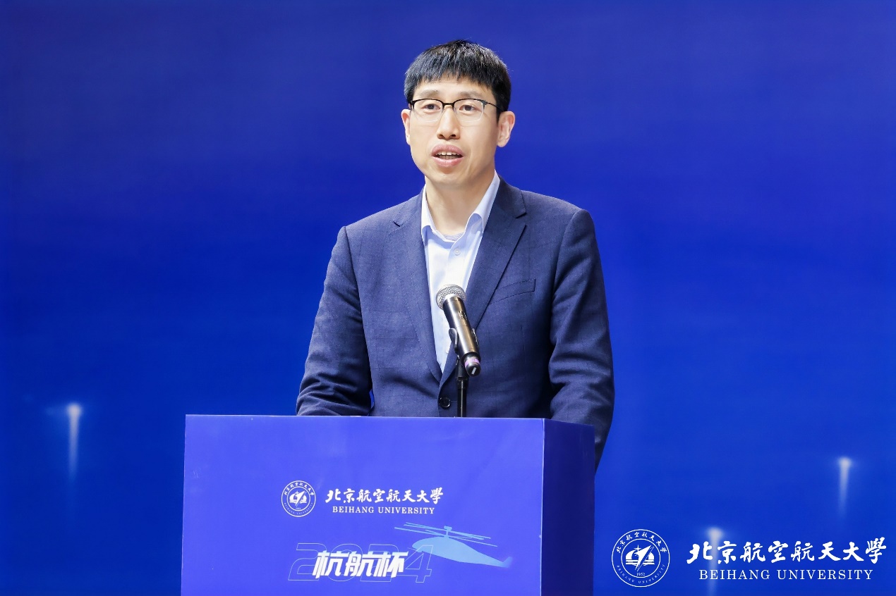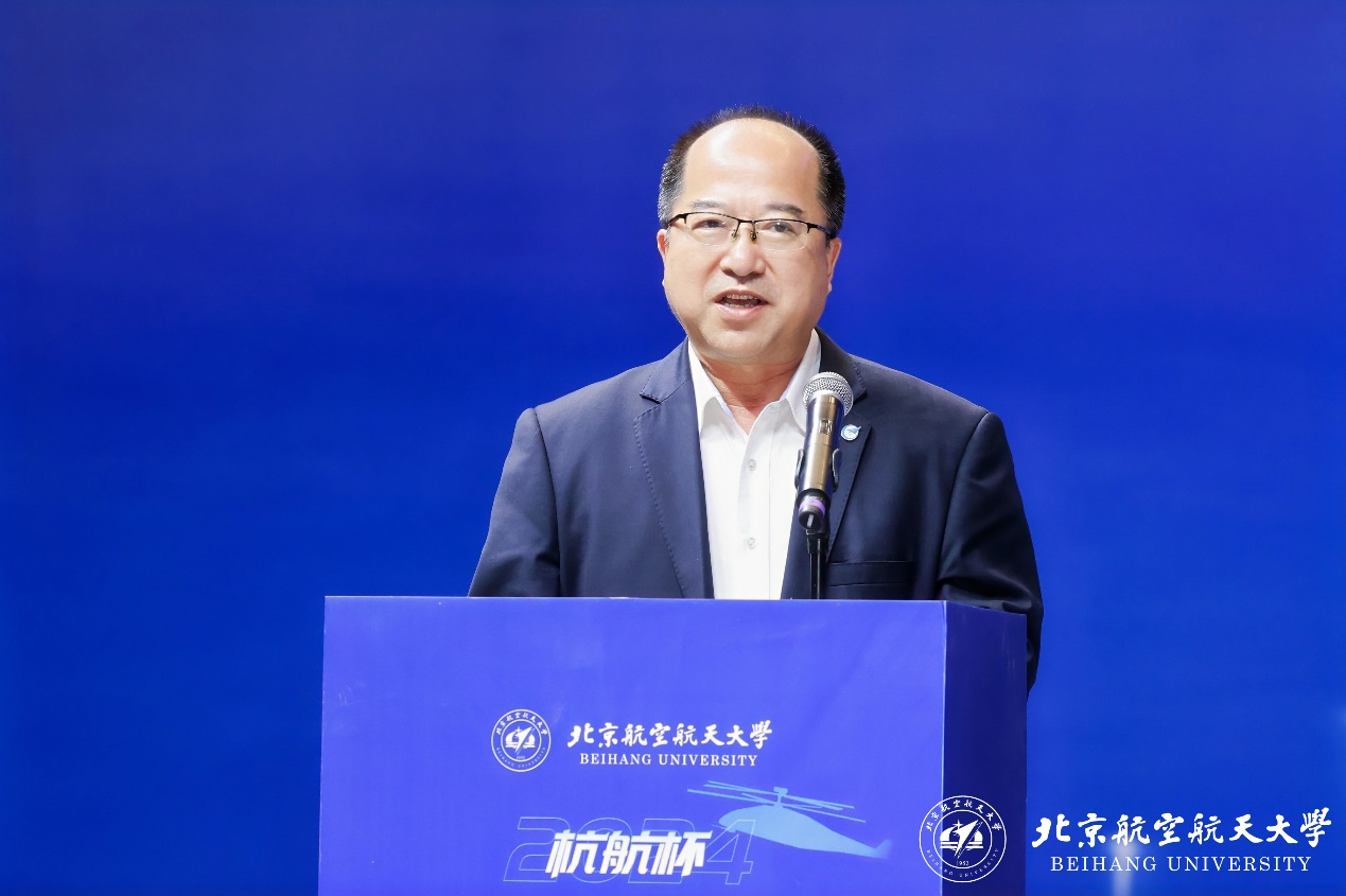 北京亚洲成人在线一二三四五六区副校长赵巍胜、中国航空学会执行秘书长周竞赛致辞。中航工业通飞总经理助理、副总工程师,大型水陆两栖飞机“鲲龙”AG600总设计师黄领才寄语,期望同学们以此次比赛为新的起点,继续保持对航空航天的热爱,努力学习奋斗,为强国建设贡献青春力量。