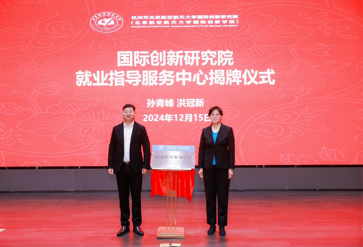 会上,孙青峰书记和洪冠新院长共同为“国际创新研究院就业指导服务中心”揭牌,该中心的成立是北航国新院推动校企协同育人、支持学生成长成才、服务区域经济发展的重要举措,将成为校企合作对接的重要平台。