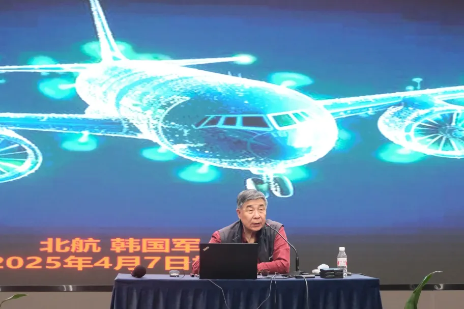 4月7日,韩国军老师为北航国新院师生带来《科技强国 创新发展——聚焦中国“20”时代》的专题讲座,讲座聚焦中国航空工业的成就,深度解析了多款飞机的技术参数与创新应用,展示了我国自主航空装备从“跟跑”、“并跑”到“领跑”的跨越式发展。师生们针对讲座内容踊跃提问,韩国军老师以丰富的经历和深厚的专业知识耐心解答,现场气氛热烈。