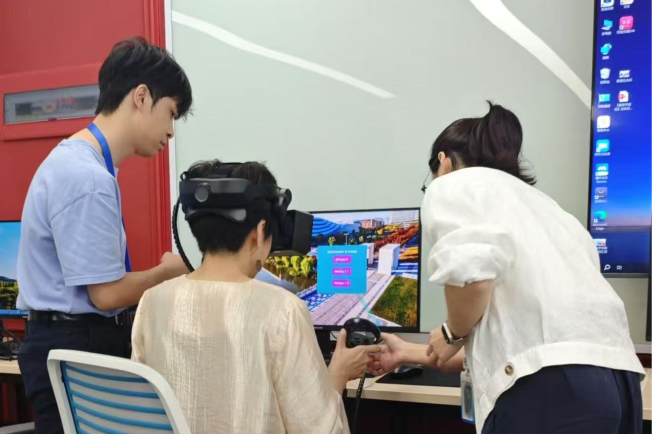 VR语言教学是北航国新院当前重点打造的前沿教学试验项目,结合了虚拟角色对话互动、语音识别、真实情境模拟等多种功能,充分发挥数字技术对学生教育的放大、叠加、倍增作用,为学生提供了一个全方位、多感官的学习环境。该项目目前应用于法语教学,后期可延伸至英语教学、汉语国际教学等场景。通过模拟真实的语言环境,学生可以在仿真场景中与虚拟角色进行互动对话,不断提高外语的听说能力和应对各种场景的交流能力。
