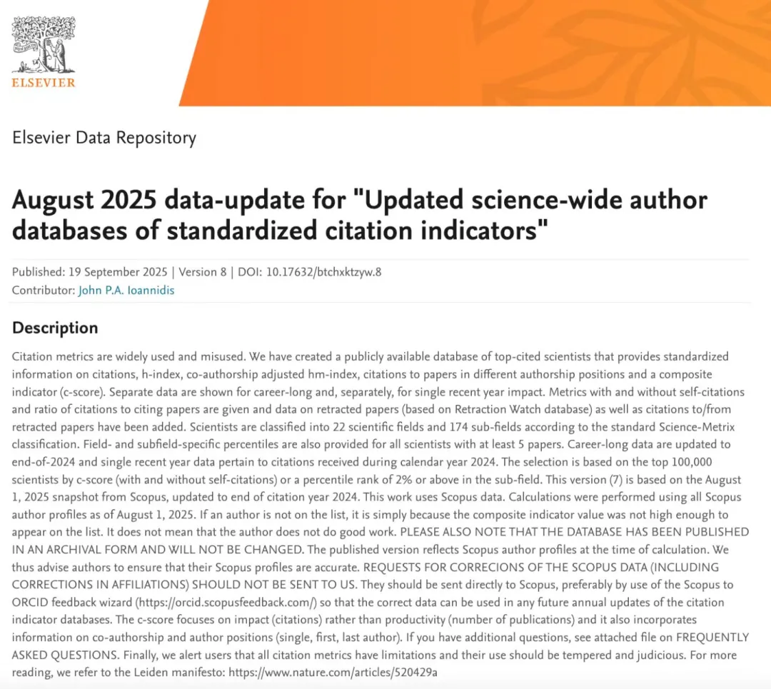 近日,美国斯坦福大学和爱思唯尔数据库发布《全球前2%顶尖科学家榜单2025》(Stanford University Top 2% Scientists List 2025),该榜单包括“终身科学影响力榜单”(Career-long impact)和“年度科学影响力榜单”(Single-year impact)。北航国新院共有3...