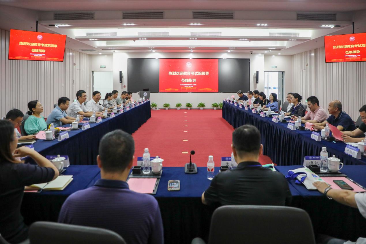 7月16日下午,浙江省教育考试院副院长吴东平、浙江省11个区市教育考试院院长一行来到北航杭州国际校园参观调研。北航国新院党委书记孙青峰、副院长杜鹏程、各设区市招生小组负责人参加调研座谈。